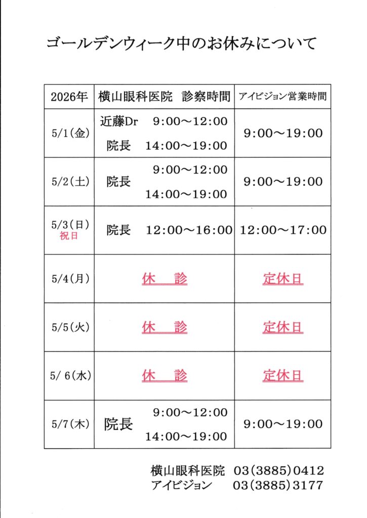 ゴールデンウィーク中のお休みに伴う営業日につきましては、下記のとおりになっております。