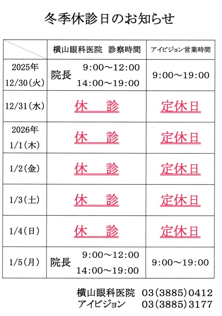 冬季休業期間:2025年12月31日(水)〜2026年1月4日(日)